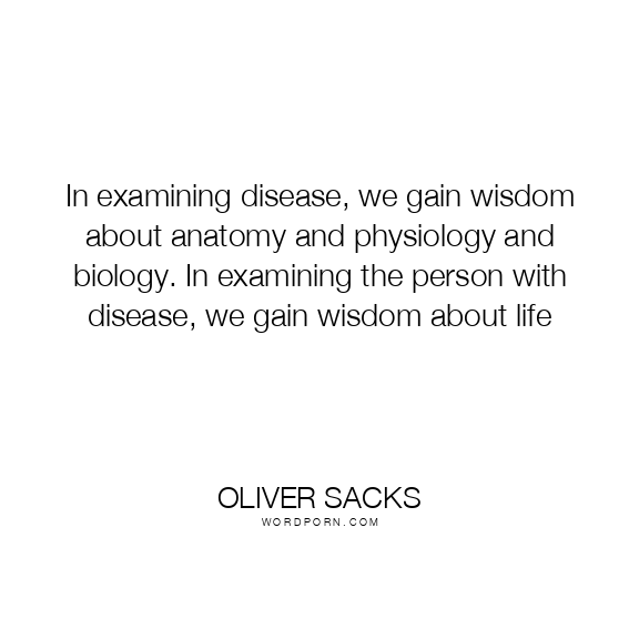 In examining disease, we gain wisdom about anatomy and physiology and biology. In examining the person with disease, we gain wisdom about life