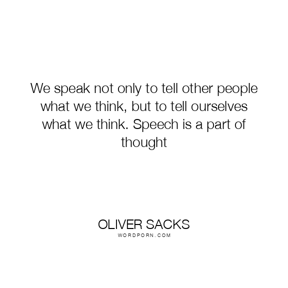 We speak not only to tell other people what we think, but to tell ourselves what we think. Speech is a part of thought