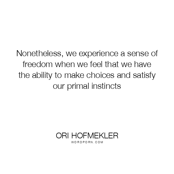 Nonetheless, we experience a sense of freedom when we feel that we have the ability to make choices and satisfy our primal instincts