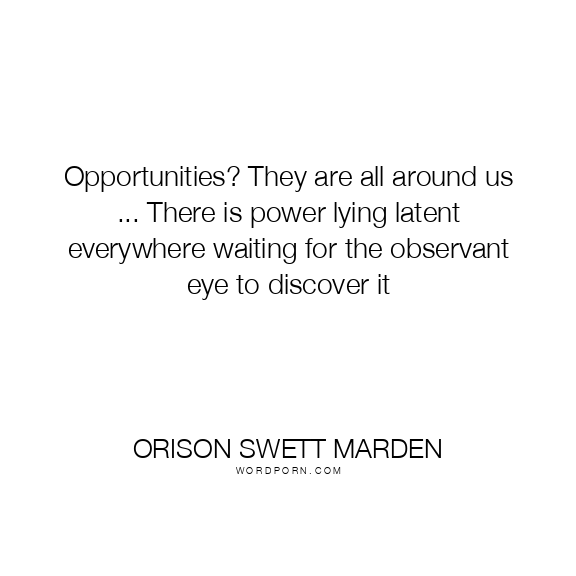 Opportunities? They are all around us ... There is power lying latent everywhere waiting for the observant eye to discover it