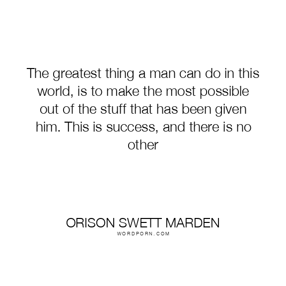 The greatest thing a man can do in this world, is to make the most possible out of the stuff that has been given him. This is success, and there is no other
