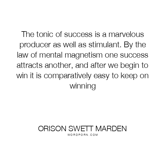 The tonic of success is a marvelous producer as well as stimulant. By the law of mental magnetism one success attracts another, and after we begin to win it is comparatively easy to keep on winning