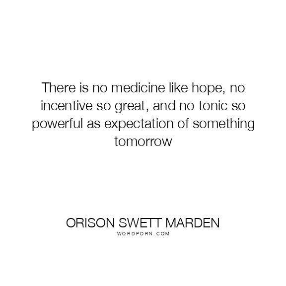 There is no medicine like hope, no incentive so great, and no tonic so powerful as expectation of something tomorrow