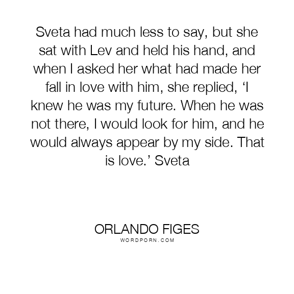Sveta had much less to say, but she sat with Lev and held his hand, and when I asked her what had made her fall in love with him, she replied, ‘I knew he was my future. When he was not there, I would look for him, and he would always appear by my side. That is love.’ Sveta