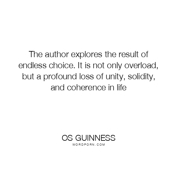 The author explores the result of endless choice. It is not only overload, but a profound loss of unity, solidity, and coherence in life