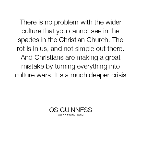 There is no problem with the wider culture that you cannot see in the spades in the Christian Church. The rot is in us, and not simple out there. And Christians are making a great mistake by turning everything into culture wars. It's a much deeper crisis