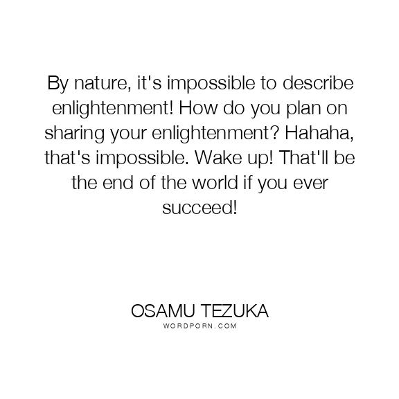 By nature, it's impossible to describe enlightenment! How do you plan on sharing your enlightenment? Hahaha, that's impossible. Wake up! That'll be the end of the world if you ever succeed!