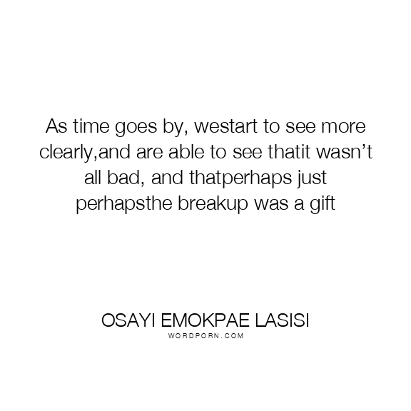 As time goes by, westart to see more clearly,and are able to see thatit wasn’t all bad, and thatperhaps just perhapsthe breakup was a gift
