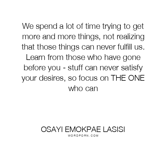 We spend a lot of time trying to get more and more things, not realizing that those things can never fulfill us. Learn from those who have gone before you - stuff can never satisfy your desires, so focus on THE ONE who can