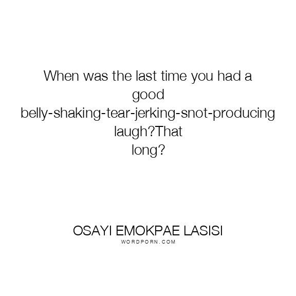 When was the last time you had a good belly-shaking-tear-jerking-snot-producing laugh?That long?