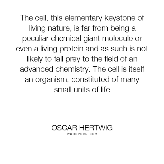 The cell, this elementary keystone of living nature, is far from being a peculiar chemical giant molecule or even a living protein and as such is not likely to fall prey to the field of an advanced chemistry. The cell is itself an organism, constituted of many small units of life