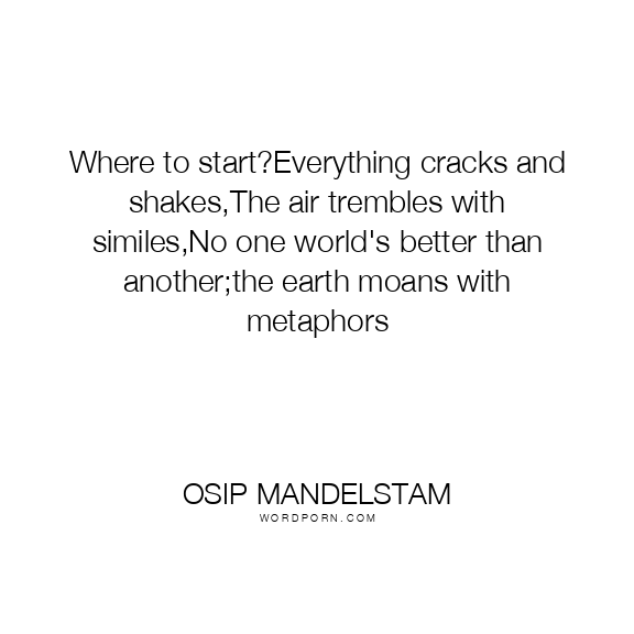 Copy Image Where to start?Everything cracks and shakes,The air trembles with similes,No one world's better than another;the earth moans with metaphors Moms Typewriter A A SAVE THIS IMAGE