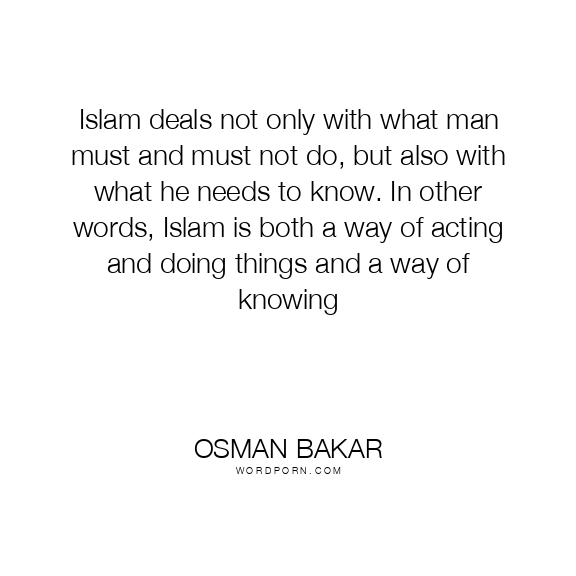 Islam deals not only with what man must and must not do, but also with what he needs to know. In other words, Islam is both a way of acting and doing things and a way of knowing