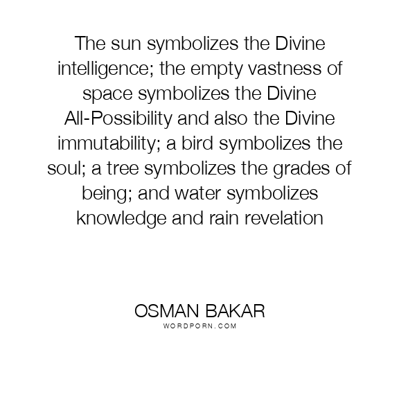 The sun symbolizes the Divine intelligence; the empty vastness of space symbolizes the Divine All-Possibility and also the Divine immutability; a bird symbolizes the soul; a tree symbolizes the grades of being; and water symbolizes knowledge and rain revelation
