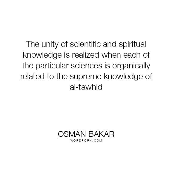 The unity of scientific and spiritual knowledge is realized when each of the particular sciences is organically related to the supreme knowledge of al-tawhid
