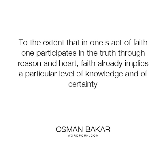 To the extent that in one's act of faith one participates in the truth through reason and heart, faith already implies a particular level of knowledge and of certainty