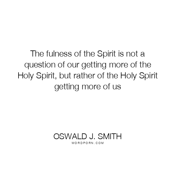 The fulness of the Spirit is not a question of our getting more of the Holy Spirit, but rather of the Holy Spirit getting more of us