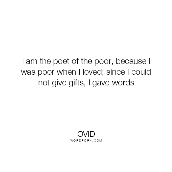 I am the poet of the poor, because I was poor when I loved; since I could not give gifts, I gave words
