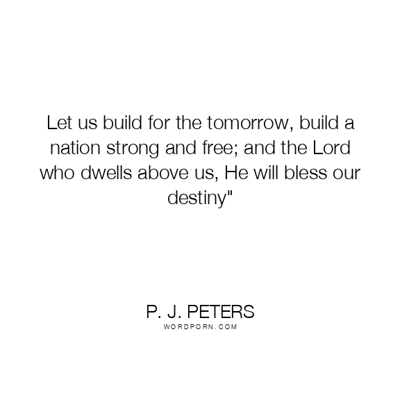 Copy Image Let us build for the tomorrow, build a nation strong and free; and the Lord who dwells above us, He will bless our destiny" Moms Typewriter A A SAVE THIS IMAGE
