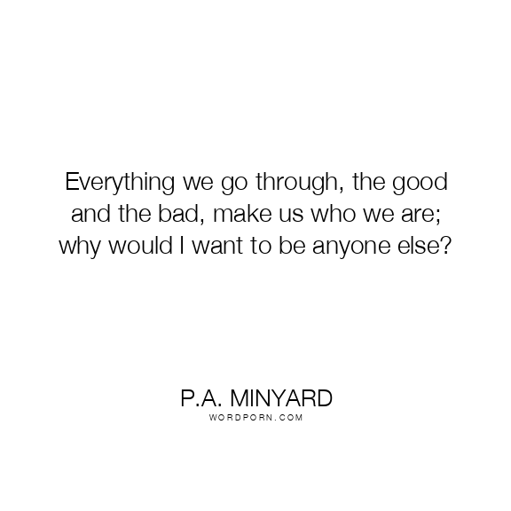 Everything we go through, the good and the bad, make us who we are; why would I want to be anyone else?