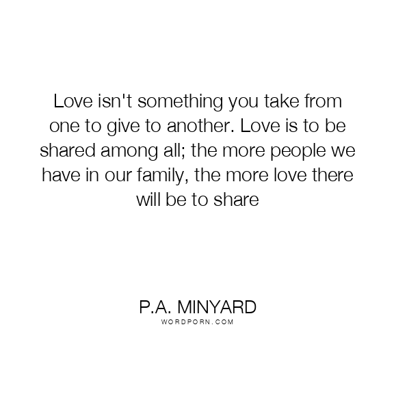 Love isn't something you take from one to give to another. Love is to be shared among all; the more people we have in our family, the more love there will be to share