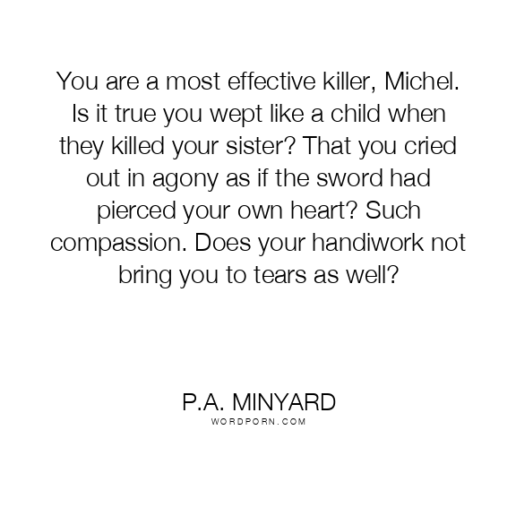 You are a most effective killer, Michel. Is it true you wept like a child when they killed your sister? That you cried out in agony as if the sword had pierced your own heart? Such compassion. Does your handiwork not bring you to tears as well?