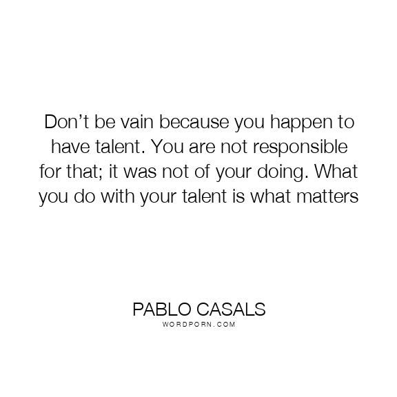 Don’t be vain because you happen to have talent. You are not responsible for that; it was not of your doing. What you do with your talent is what matters