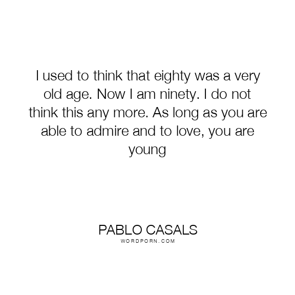 I used to think that eighty was a very old age. Now I am ninety. I do not think this any more. As long as you are able to admire and to love, you are young