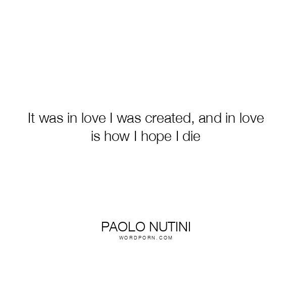 It was in love I was created, and in love is how I hope I die