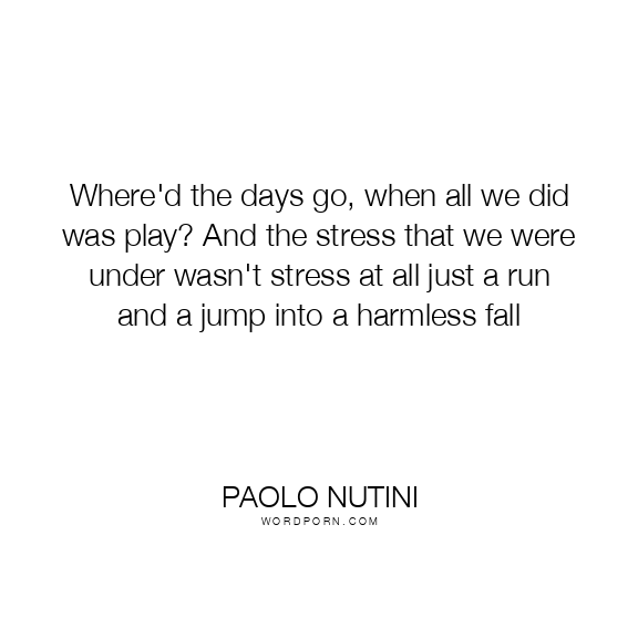 Where'd the days go, when all we did was play? And the stress that we were under wasn't stress at all just a run and a jump into a harmless fall
