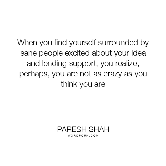 When you find yourself surrounded by sane people excited about your idea and lending support, you realize, perhaps, you are not as crazy as you think you are