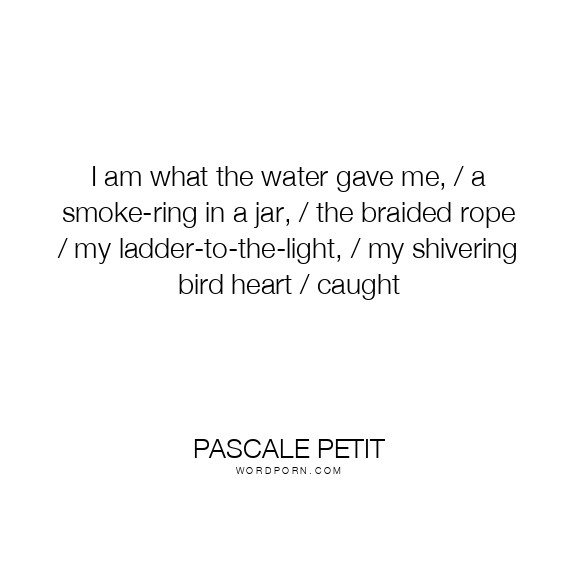 Copy Image I am what the water gave me, / a smoke-ring in a jar, / the braided rope / my ladder-to-the-light, / my shivering bird heart / caught Moms Typewriter A A SAVE THIS IMAGE