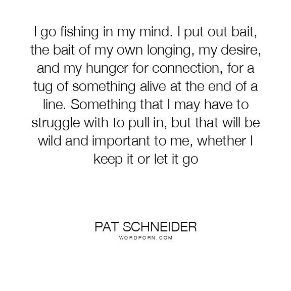 I go fishing in my mind. I put out bait, the bait of my own longing, my desire, and my hunger for connection, for a tug of something alive at the end of a line. Something that I may have to struggle with to pull in, but that will be wild and important to me, whether I keep it or let it go
