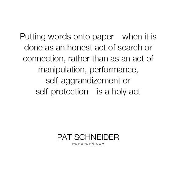 Putting words onto paper—when it is done as an honest act of search or connection, rather than as an act of manipulation, performance, self-aggrandizement or self-protection—is a holy act