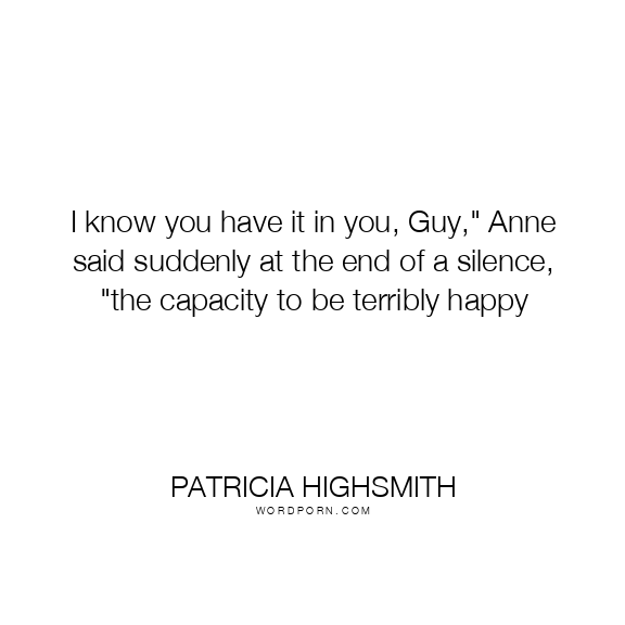 I know you have it in you, Guy," Anne said suddenly at the end of a silence, "the capacity to be terribly happy