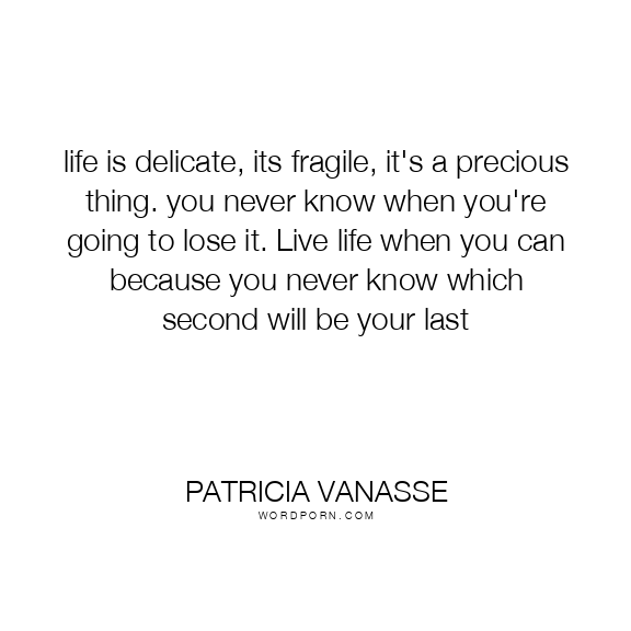 life is delicate, its fragile, it's a precious thing. you never know when you're going to lose it. Live life when you can because you never know which second will be your last