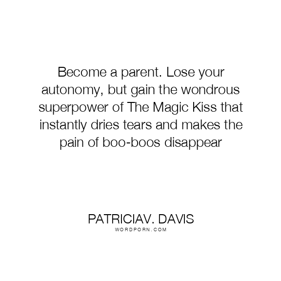 Become a parent. Lose your autonomy, but gain the wondrous superpower of The Magic Kiss that instantly dries tears and makes the pain of boo-boos disappear