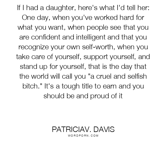 If I had a daughter, here's what I'd tell her: One day, when you've worked hard for what you want, when people see that you are confident and intelligent and that you recognize your own self-worth, when you take care of yourself, support yourself, and stand up for yourself, that is the day that the world will call you "a cruel and selfish bitch." It's a tough title to earn and you should be and proud of it
