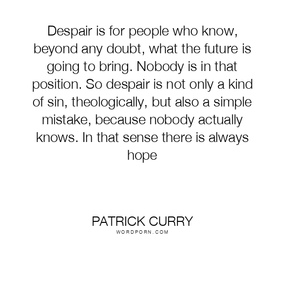 Despair is for people who know, beyond any doubt, what the future is going to bring. Nobody is in that position. So despair is not only a kind of sin, theologically, but also a simple mistake, because nobody actually knows. In that sense there is always hope
