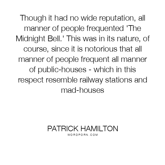 Though it had no wide reputation, all manner of people frequented 'The Midnight Bell.' This was in its nature, of course, since it is notorious that all manner of people frequent all manner of public-houses - which in this respect resemble railway stations and mad-houses
