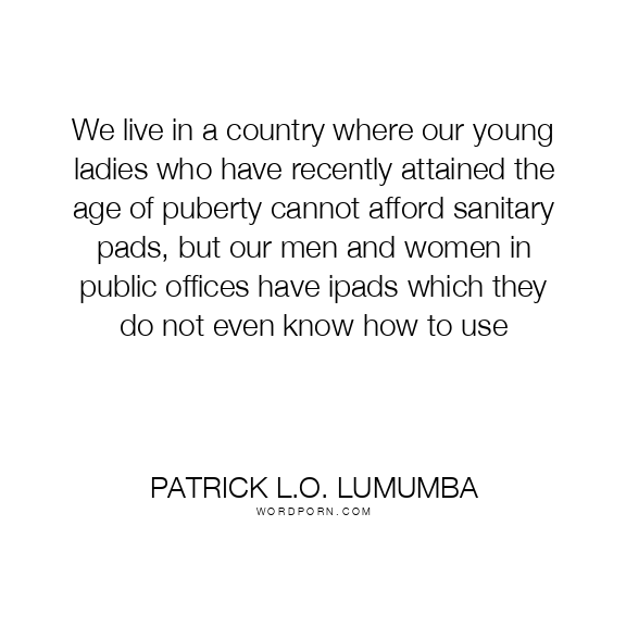 We live in a country where our young ladies who have recently attained the age of puberty cannot afford sanitary pads, but our men and women in public offices have ipads which they do not even know how to use