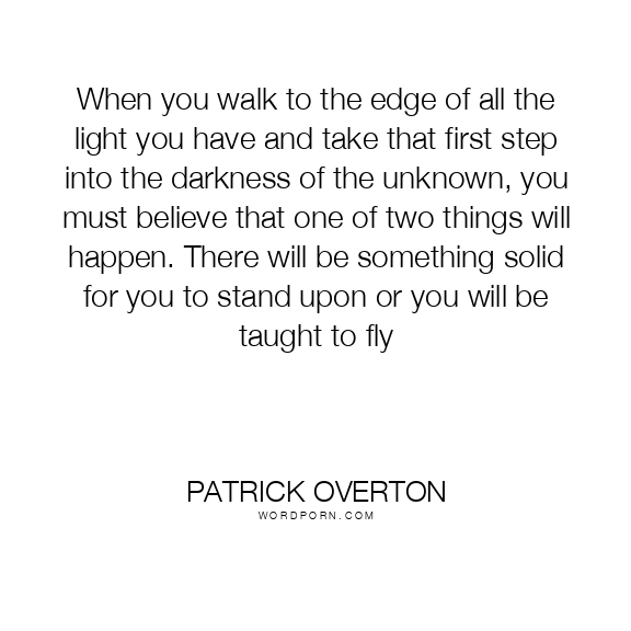 When you walk to the edge of all the light you have and take that first step into the darkness of the unknown, you must believe that one of two things will happen. There will be something solid for you to stand upon or you will be taught to fly