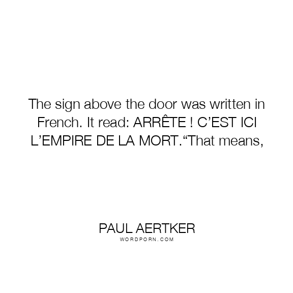 The sign above the door was written in French. It read: ARRÊTE ! C’EST ICI L’EMPIRE DE LA MORT.“That means,