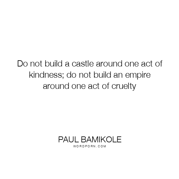 Do not build a castle around one act of kindness; do not build an empire around one act of cruelty