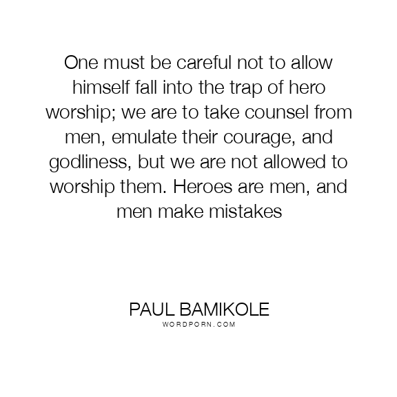 One must be careful not to allow himself fall into the trap of hero worship; we are to take counsel from men, emulate their courage, and godliness, but we are not allowed to worship them. Heroes are men, and men make mistakes