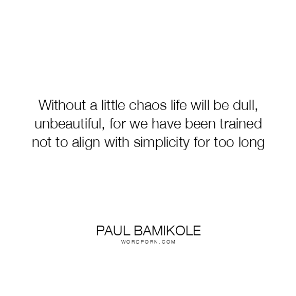 Without a little chaos life will be dull, unbeautiful, for we have been trained not to align with simplicity for too long