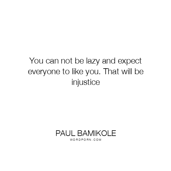 You can not be lazy and expect everyone to like you. That will be injustice