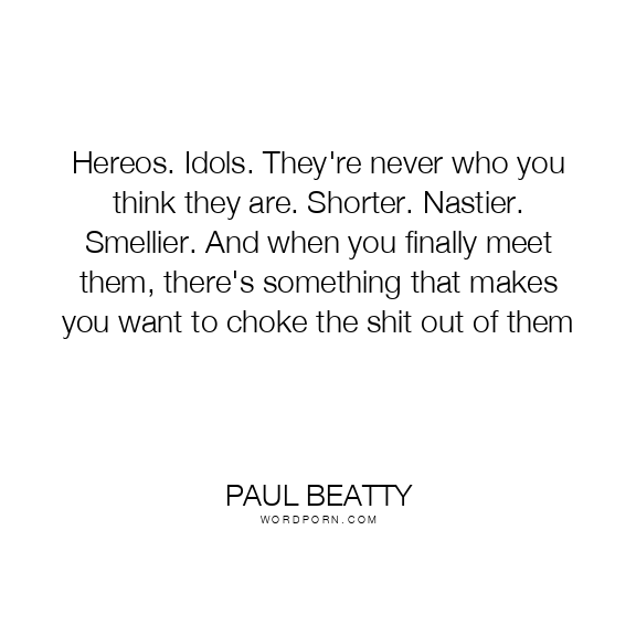 Hereos. Idols. They're never who you think they are. Shorter. Nastier. Smellier. And when you finally meet them, there's something that makes you want to choke the shit out of them