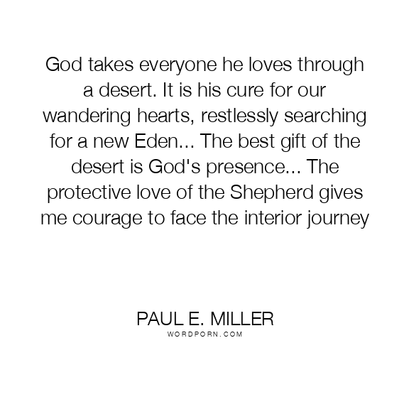 God takes everyone he loves through a desert. It is his cure for our wandering hearts, restlessly searching for a new Eden... The best gift of the desert is God's presence... The protective love of the Shepherd gives me courage to face the interior journey