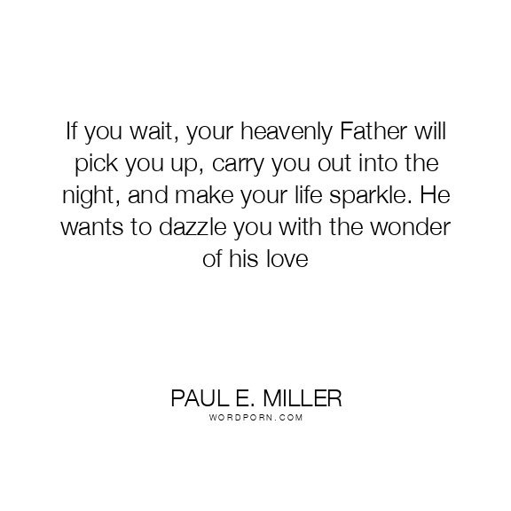 If you wait, your heavenly Father will pick you up, carry you out into the night, and make your life sparkle. He wants to dazzle you with the wonder of his love
